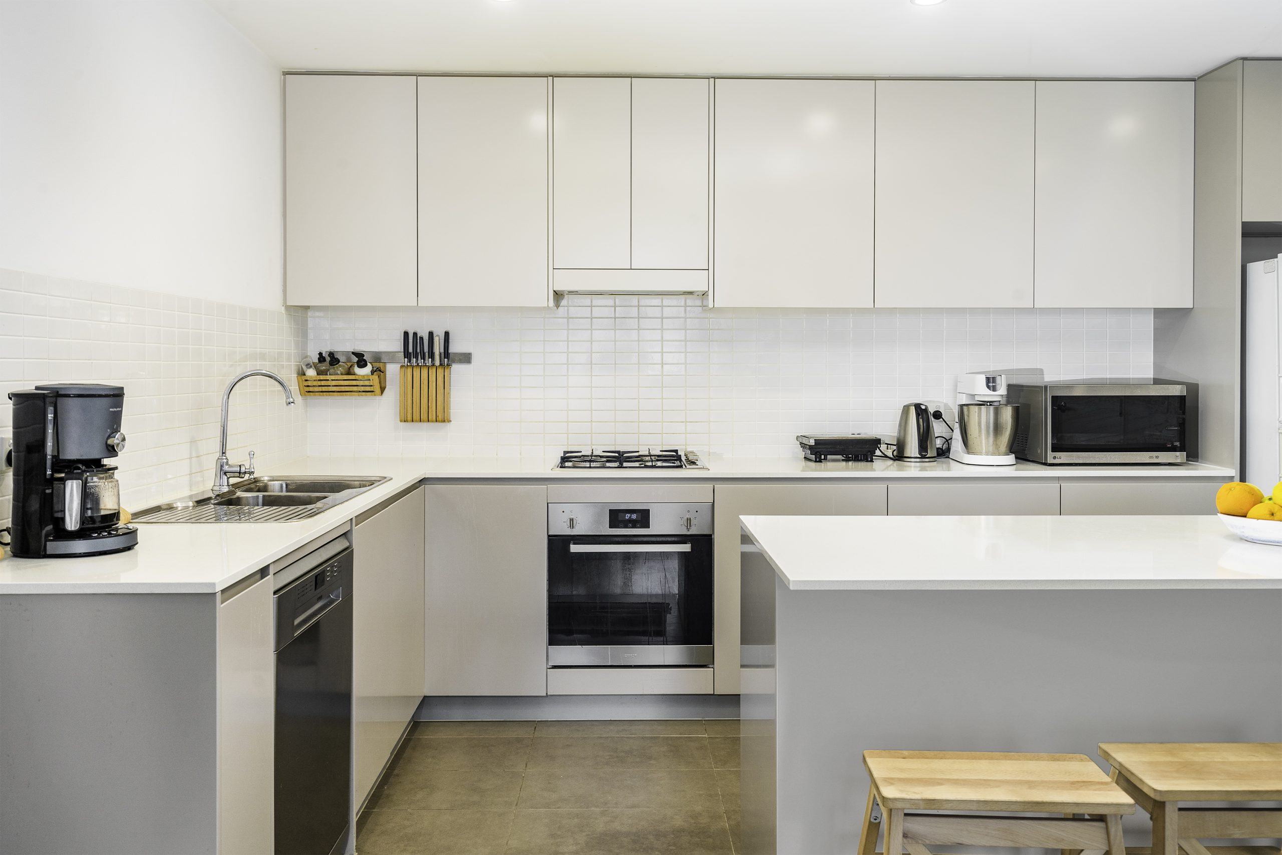 + Stone benchtops in the kitchen with gas cooking